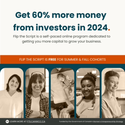 We’ve partnered with the Canadian Women’s Chamber of Commerce for Flip the Script, a FREE online program that teaches entrepreneurs a communication style that’s been proven to get 60% more money from investors.