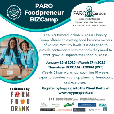 PARO is again running their successful 10-week Foodpreneur BizCamp for Foodpreneur product producers who are established on a small scale, but looking to scale up to provide to larger food retailers. (Note: this Bizcamp is suitable for women who have already started their food business, and are in the early stages. Not those in the ideation stage.)